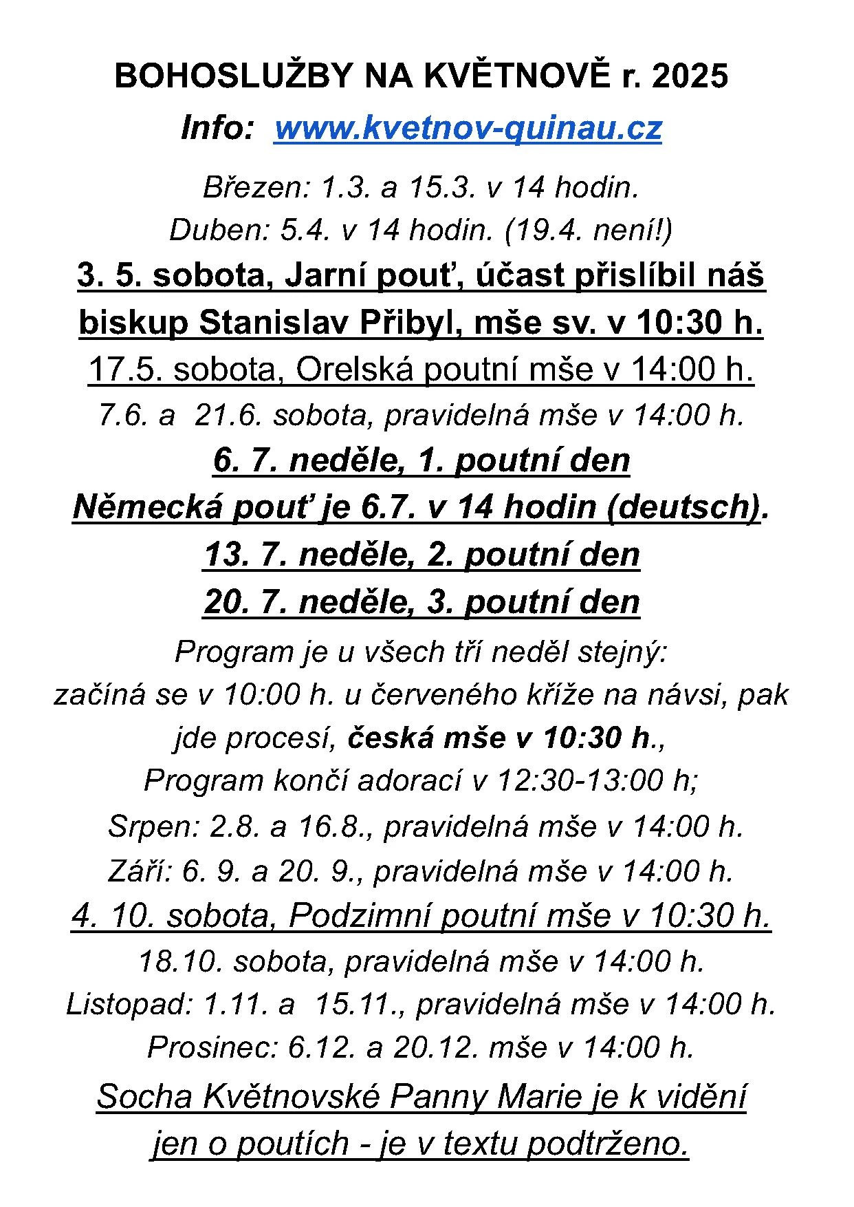 Mše svaté k Suchým dnům jsou slouženy ve vejprtské farnosti ve dnech a v kostelích farnosti podle aktuálních ohlášek.